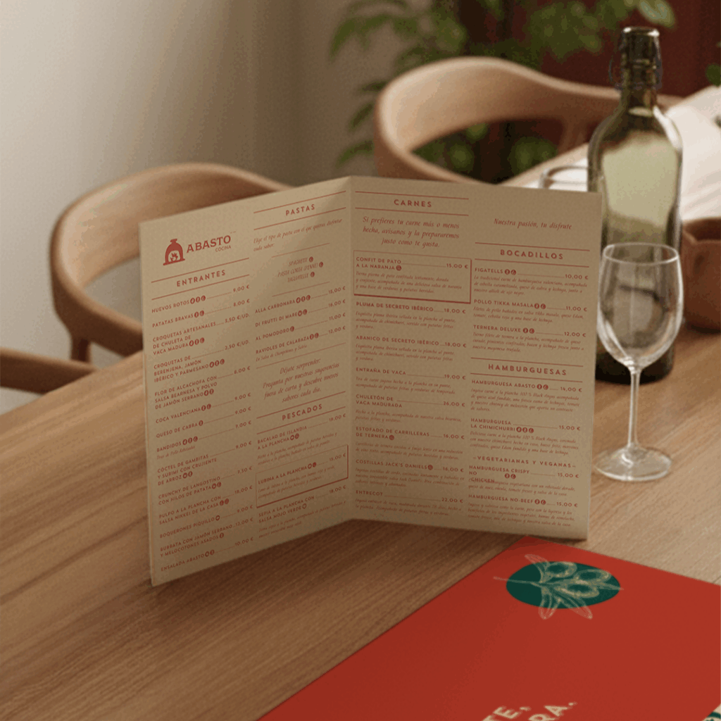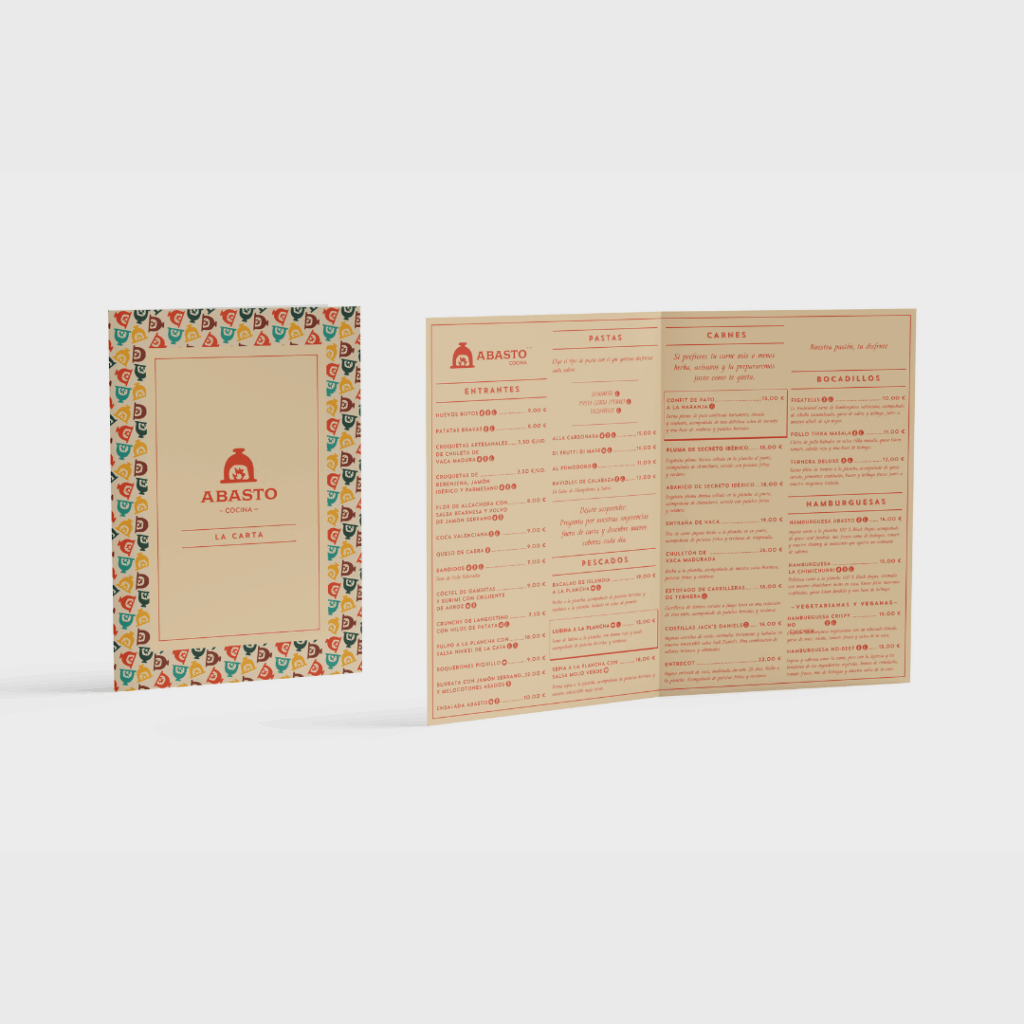 Una identidad visual cálida, coherente y reconocible que refleja el alma de Abasto Cocina: una fusión honesta entre frescura, tradición y calidad.
